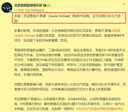 2月17日大年初一这一天,对于绝大多数国人来说都在休年假,沉浸在欢乐的新年气氛当中。但是,北京首钢队的小编却早早开工了,正式官宣北京首钢队已经和冠军中锋麦基签约。