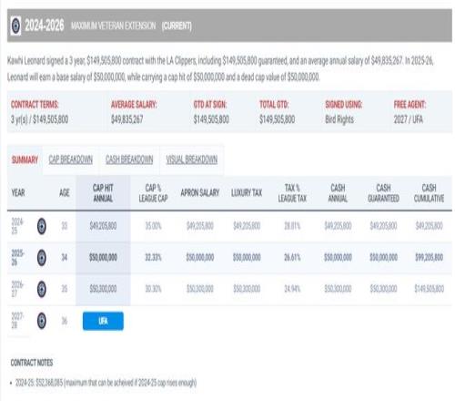 34岁的伦纳德在明夏合同到期,他现在进入生涯最巅峰的一个赛季对明夏合同有着巨大的影响。