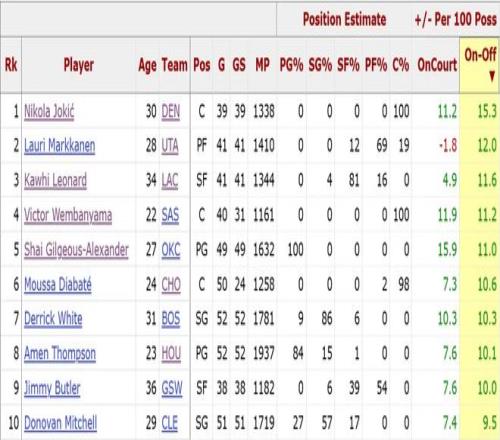 对于这份榜单,你有什么想说的吗?你认为ON-OFF值能代表球员的真实表现吗?你觉得赛季结束时,这份榜单的前五会是哪五位球员?