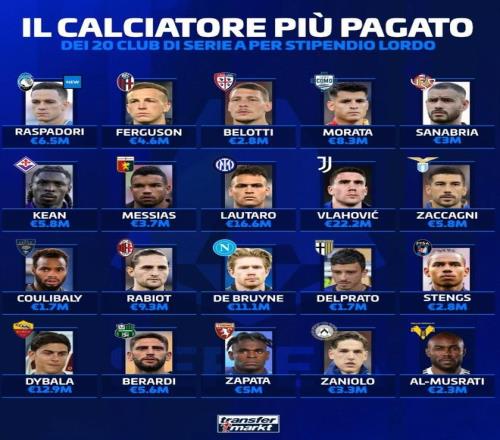 科莫的莫拉塔没太好发挥的,没起到足够价值。反倒是拉比奥特在米兰真正成了英雄人物。虽然莫德里奇的整体价值更高,但拉比奥特的属性及与莫德里奇适配,是其他人不可替的,这也是阿莱格里极其信任的对象。除了他们亚特兰大新引入的拉斯帕多里、拉齐奥扎卡尼、佛罗伦萨小基恩及贝拉尔迪、萨帕塔,薪资也都在500万欧元之上。