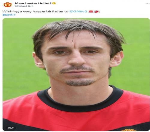 曼联官方社媒晒出内维尔的照片,配文:“祝加里·内维尔生日快乐!”