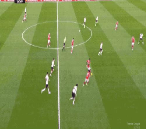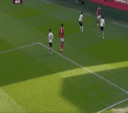 第38分钟,哈钦森的直塞打穿利物浦的防线,热苏斯没有抢先出脚,范戴克伸出一脚,完成关键解围。